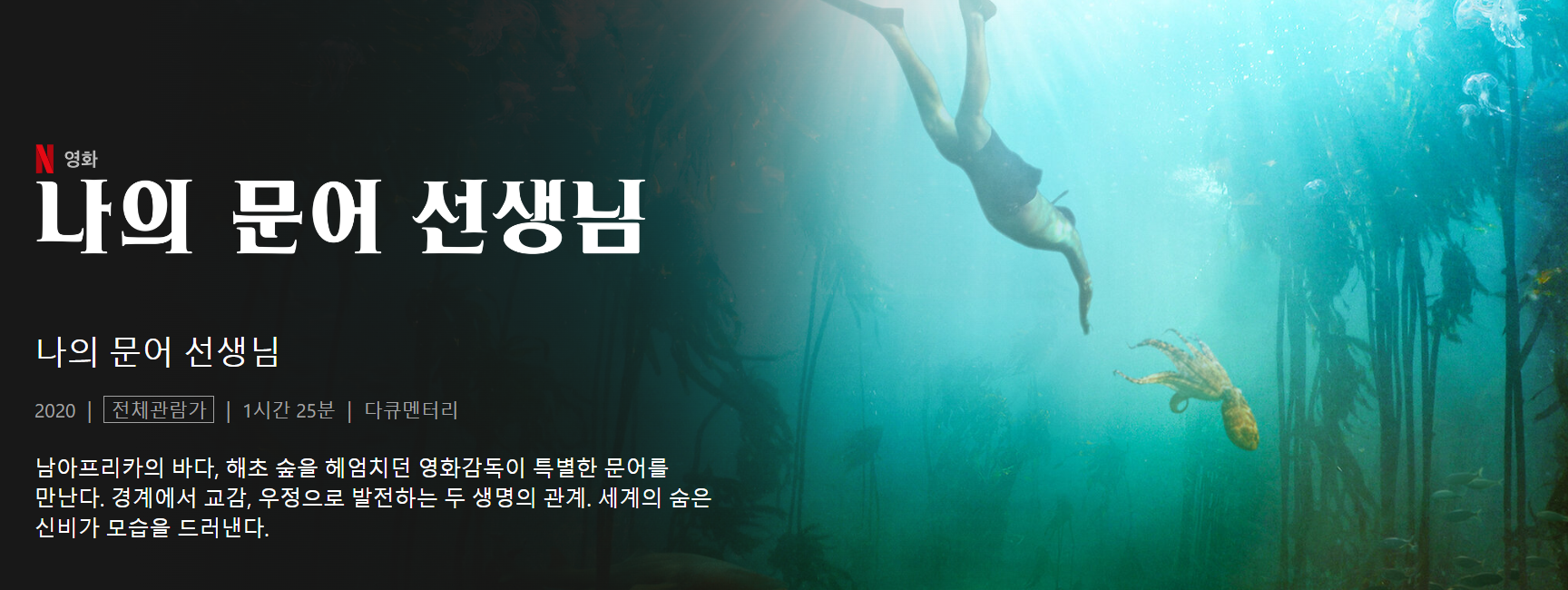 Pippa Ehrlich와 James Reed가 감독한 이 매혹적인 다큐멘터리는 특이한 우정에 대한 독특하고 가슴 따뜻한 이야기입니다. 그것은 남아프리카의 다시마 숲에서 프리 다이빙을 하면서 야생 문어와 깊은 유대감을 형성하는 영화제작자 Craig Foster를 따릅니다. 그 영화는 놀랍게도 수중 세계를 포착하고 문어의 지능과 감정적인 삶에 대한 깊은 통찰력을 제공합니다. 그것은 자연의 아름다움과 복잡성을 강조하는 매혹적이고 감동적인 이야기입니다.